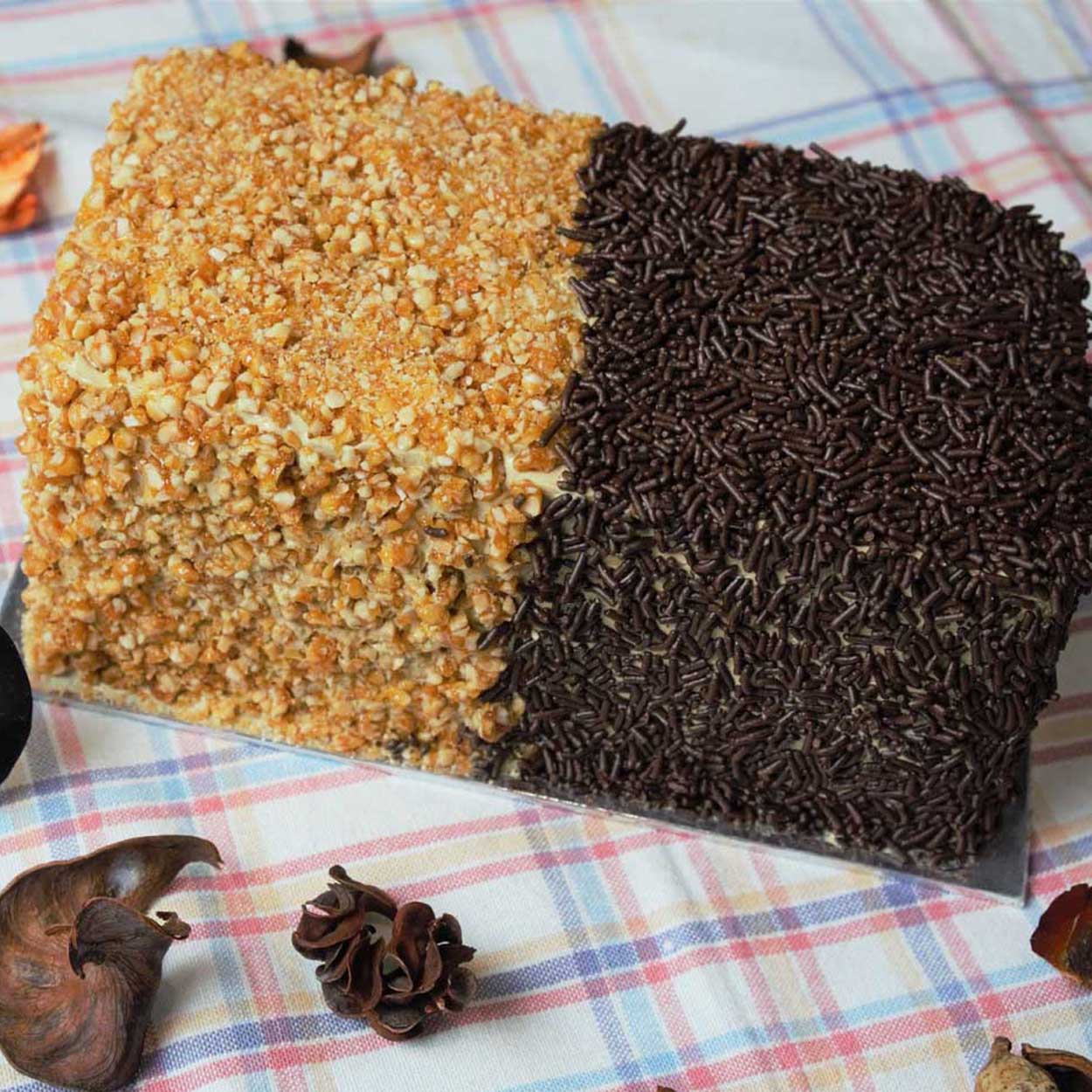 Delicious homemade mocca cake or vanilla cake in easy-to-carry packages